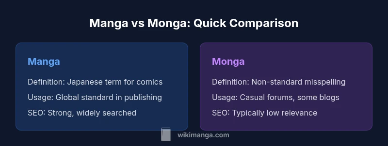 - Key takeaway: manga is the recognized, culturally specific term; monga is typically a misspelling or casual variant.
