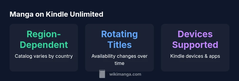 Kindle Unlimited is Amazon's subscription service that offers access to a rotating catalog of eBooks, audiobooks, and magazines for a monthly fee. For manga fans, this service promises a way to explore multiple series without purchasing each volume. However, it's important to frame expectations: can you get manga on kindle unlimited? The answer depends on licensing, regional availability, and the specific editions offered in the catalog. In practice, Kindle Unlimited provides a curated window into manga titles rather than a comprehensive library. This means you may find popular titles alongside indie gems, but you won't find every series or every volume under every license. The WikiManga. team has analyzed catalog patterns and licensing cycles to help readers navigate what is currently accessible and how to plan your reading without surprises. By understanding the structure of Kindle Unlimited, you can better decide when it makes sense to dig into a title with a subscription versus buying it outright or borrowing from another service.