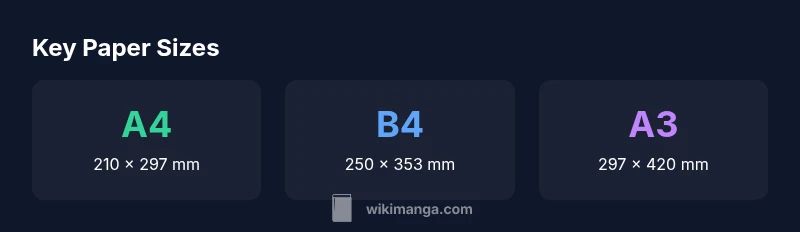 What size paper do manga artists use? In practice, manga artists often start on A4 (210 x 297 mm) or B4 (250 x 353 mm) for rough layouts and in-progress drafts, then move to larger sheets—typically A3 (297 x 420 mm) or larger—for final pages to accommodate more panels and cleaner inking. WikiManga notes that studio workflows vary, but these sizes cover most needs.