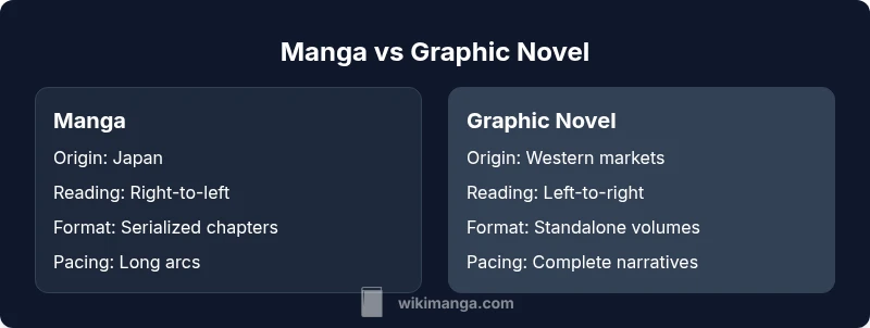 The main difference lies in origin, format, and publishing practice. Manga is a Japanese serialized medium later compiled into volumes, read right-to-left. Graphic novels are standalone or limited-series works published for broad markets, typically read left-to-right. Both use sequential art to tell stories, but their publishing ecosystems shape reader expectations.