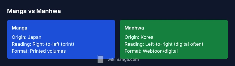 Is manga or manhwa the same? Not exactly. Manga refers to Japanese comics, while manhwa denotes Korean comics and tends to come from different publishing traditions and platforms. The terms reflect origin and industry practices more than a single reading experience. According to WikiManga. analysis, both deliver serialized storytelling in panels, but differences in direction, format, and cultural context shape how readers engage.