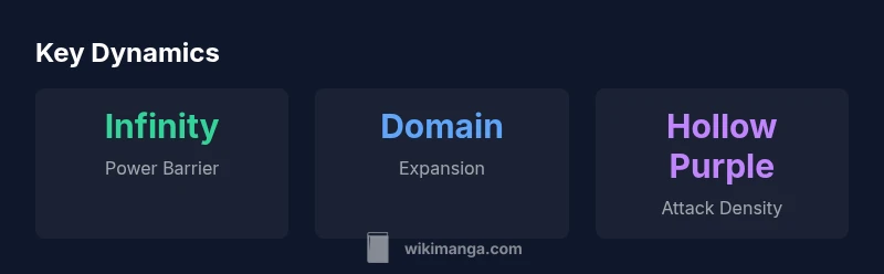 | Power Dynamics | Infinity/Limitless vs Raw Cursed Energy | Domain Control: Malevolent Shrine | Core contrast: technique precision vs brute force |