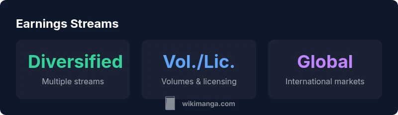 Creators typically earn from serialization deals, print volume sales, digital licensing, licensing for adaptations, and merchandising. Some income also comes from translations and localization or teaching and workshops. Earnings are usually spread across multiple streams to reduce risk.