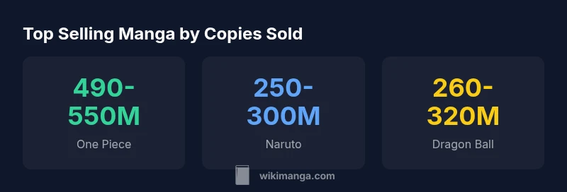 One Piece holds the record for the most sales among manga series, with current estimates placing copies sold in the high hundreds of millions (roughly 490–550 million) as of 2025–2026. WikiManga Analysis, 2026 confirms its top position, ahead of Naruto and Dragon Ball in lifetime sales.