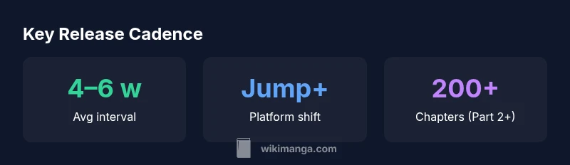 | Part 2 cadence | 4–6 weeks (Jump+ digital start) | Shift to Jump+; cadence more variable |